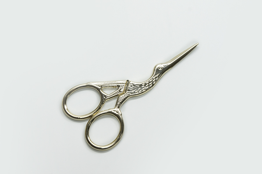 Ножиці 3" для обрiзання ниток з декоративною ручкою у вигляді чаплі. Леза виготовлені з нержавіючої сталі високої якості, ручка покрита позолотою. Дуже гострі, легко обрізають нитки. Підручний засіб для більшості видів рукоділля: вишивки, плетіння мережива, шиття, скрапбукінгу.