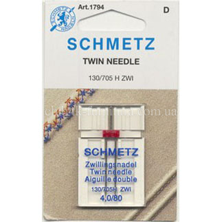 Номер голки 100Подвійні та потрійні голки цього типу можуть застосовуватися у більшості швейних машин, що здатні виконувати зигзаг і мають поперечно розташований човник.