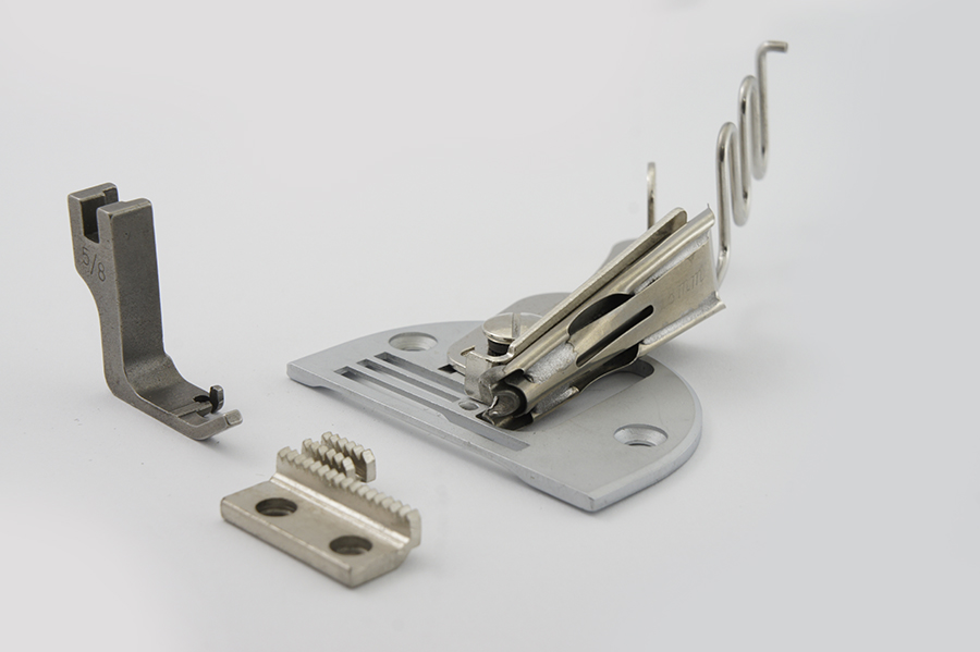 Положення облямовувача на голковій пластині може регулюватися за допомогою важеля, завдяки чому можливо коригувати відстань зоба облямовувача до голки.Представлений облямовувач в 4 складання підходить для всіх сучасних одноголкових промислових швейних машин човникового стібка.
