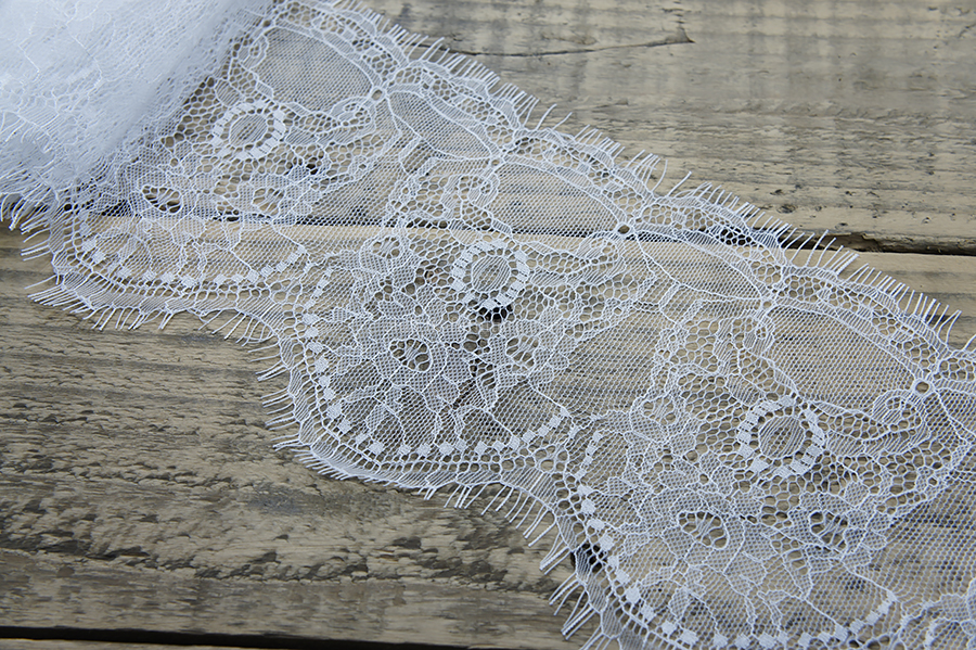 Мереживо "Шантильи" 145 мм - тонке, м'яке, нееластичне, але трохи тягнеться за рахунок плетіння. Немає такої тканини, яка б замінила його по еластичності, жіночності та унікальності.